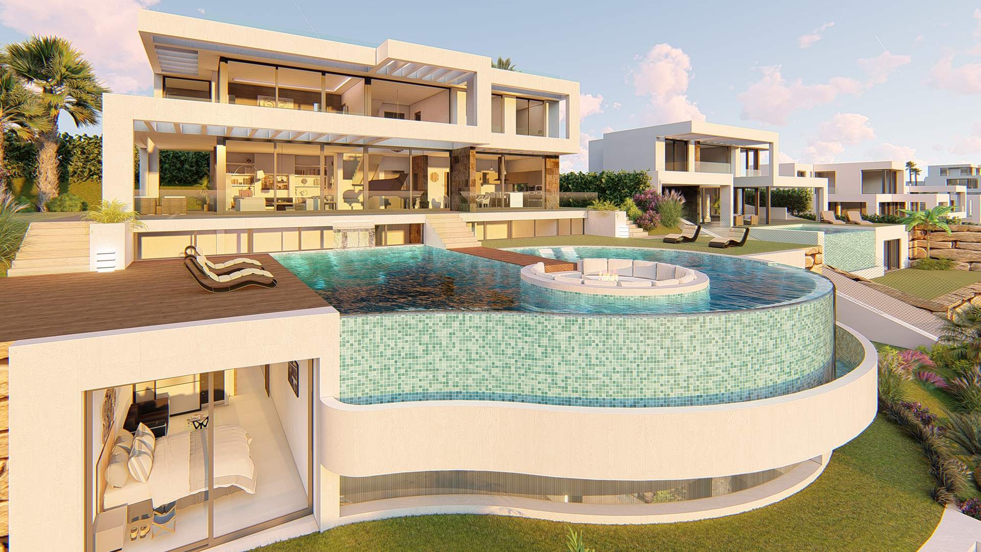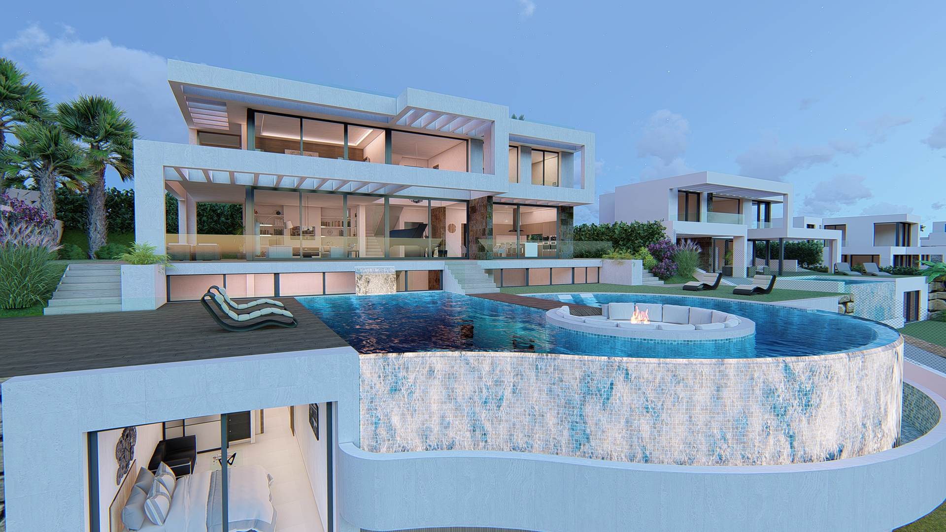 This project is located in a Private community by the name of “Urbanizacion Buena Vista” an excellent location in Mijas with sea and mountains panoramic views. Near to the commercial area of El Higueron and less than 15 minutes driving to Malaga International Airport, a perfect location to own a luxury contemporary boutique villa.